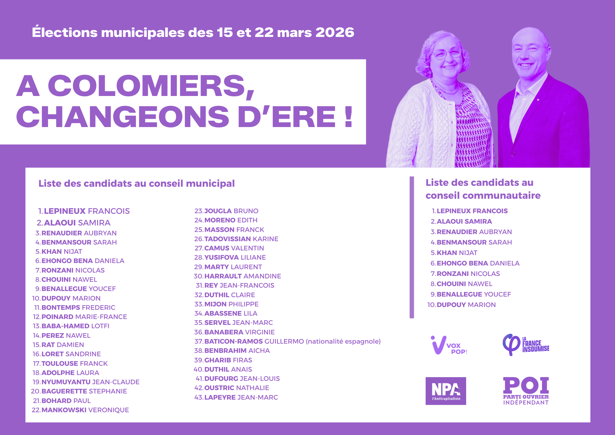 Pour une ville qui agit vraiment sur le pouvoir d’achat, la mobilité, la santé et la qualité de vie, Ne laissez pas les autres décider à votre place. 🗳️ Votez. Faite le BON choix ! À Colomiers, changeons d’ère !