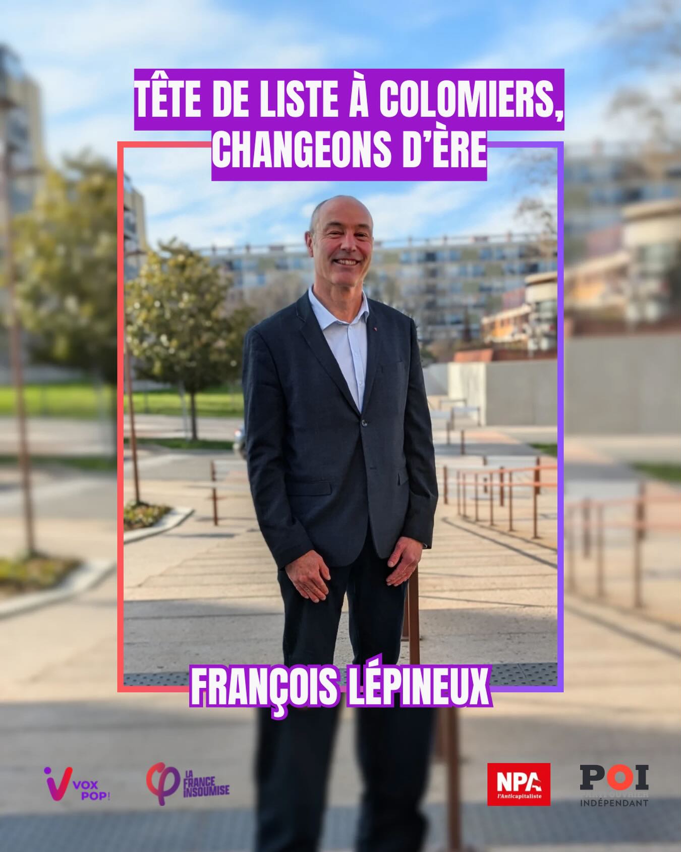 Cadre aéronautique dans le secteur des achats de la recherche, François Lépineux a aussi été président du club de l'USC natation sportive de Colomiers pendant 6 ans puis maire de Brax et vice-président de la Commission Développement Durable de Toulouse Métropole de 2014 à 2020. Il est également militant pour les droits humains, engagé contre toutes les formes de discriminations. Avec l'équipe VoxPop! l'objectif est clair : renouveler les pratiques politiques à Colomiers pour une ville solidaire, écologique et démocratique !
