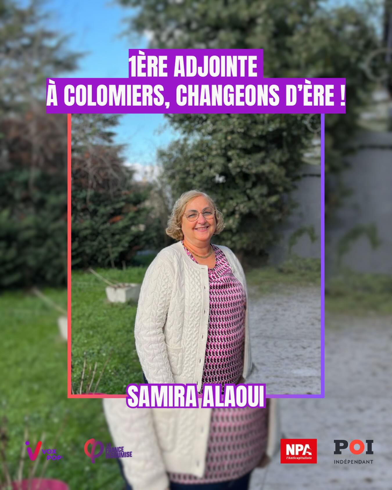 Columérine depuis plus de 26 ans, Samira Alaoui s'est engagée dans la défense des droits des salarié.e.s, notamment en tant que juge au tribunal des Prud'hommes. Elle a pu accompagner des femmes et des hommes dans leurs combats pour la justice sociale, la dignité et le respect au travail. De cette expérience, Samira y a développé une conviction : l’égalité ne doit pas être un slogan, mais une réalité vécue chaque jour. C'est la raison de son engagement aux côté de VoxPop! pour cette campagne municipale.