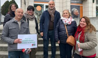 Nous demandons également l'arrêt de la coopération commerciale de l'Union Européenne avec l'état d'Israël.
