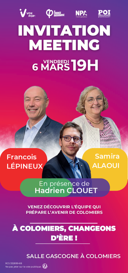 Meeting politique le vendredi 6 mars à 19h.